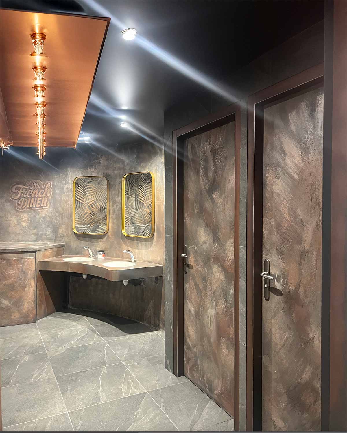 - Jeux de textures et de matières (métal, béton, dorures…)